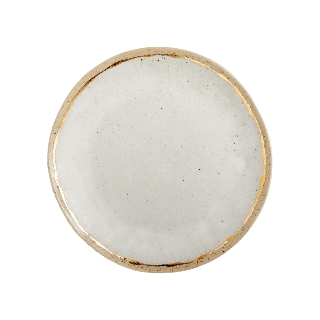 Home / Dinner Plates Primrose Dinner Plate 11.25” DiameterPortuguese Stoneware with a Speckled Reactive Glaze and Gilded Edge$6.00