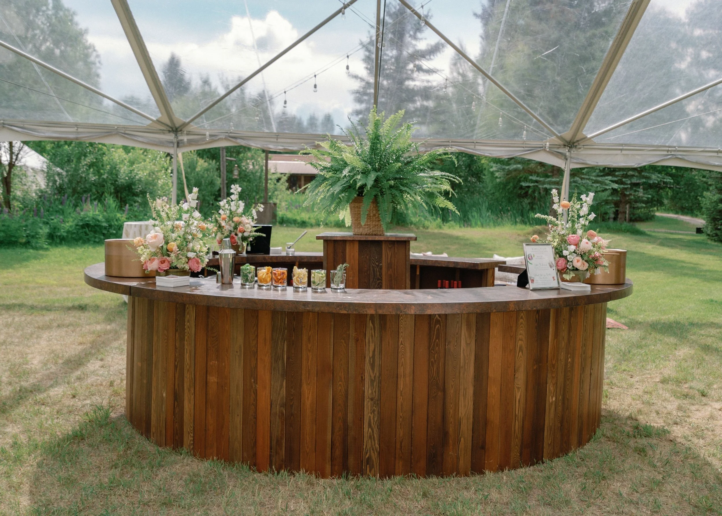 Home / Bars & Shelving Round Bar Custom made rustic wood, round bar topped with copper bar-tops. Includes center pedestal topped in copper.$2,500